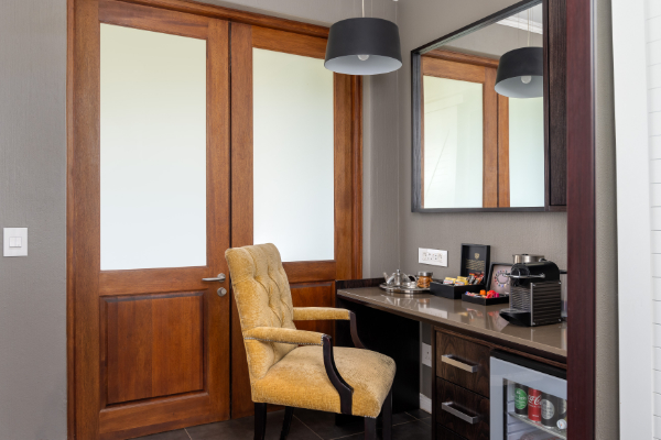 De Hoek Country Hotel’s suites and rooms are outfitted with premium furnishings and amenities. Each dwelling is arranged for premium comfort and convenience. We offer Executive Twin Rooms, Deluxe Suites, Superior Suites, and Penthouse Suites. Two of our Deluxe Suites are wheelchair-friendly. The rooms have wider doors and passages, hand rails in bathrooms, and level threshold shower entrances.