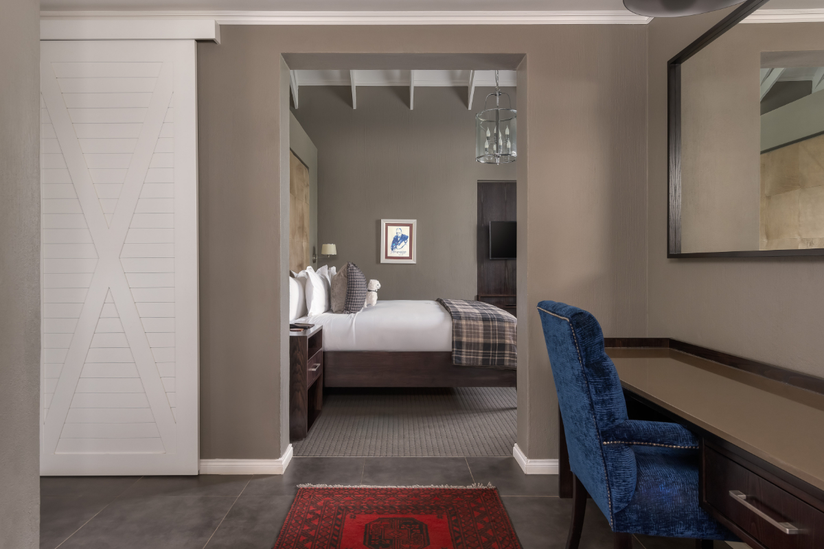 The Deluxe Suites have modern and fresh contemporary interiors. Woolen carpets and contemporary chandeliers adorn the cosy space. Each has extra length king beds, high exposed trusses, bay windows, and American ash furniture.