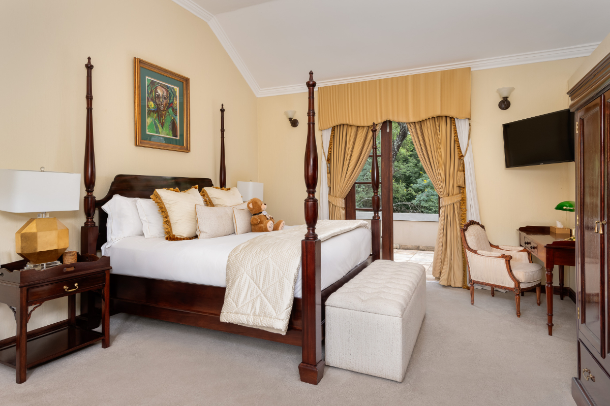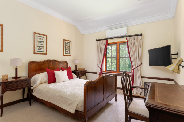 Located in the original Manor House, the Executive Twin Rooms lead off from the upper lounge area. Each has a bathroom or shower en-suite, 2 X 3/4 beds, telephone, satellite TV, Wi-Fi internet, and an executive working desk. Downstairs, you will find the lounge and Conservatory restaurant. These look out through glass doors and windows onto the cool forest. Enjoy the views of indigenous trees and shrubs that surround the main hotel.